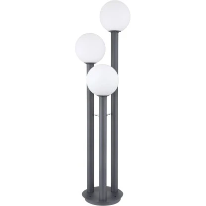 Die Außenlampe Laura von Globo besticht durch ihr stilvolles Design aus anthrazitfarbenem Edelstahl und Aluminiumdruckguss. Die 160 cm große Außenleuchte besteht aus einem runden Sockel, an dem drei Stäbe unterschiedlicher Größe fixiert sind. Die verfügen über drei opalene Glaskugeln, welche die E27-Fassungen beinhalten. Die können mit passenden LED-Leuchtmitteln Ihrer Wahl bestückt werden, wodurch Sie in der Lage sind, Lichtfarbe und Helligkeit individuell zu bestimmen. Durch mehrere Artikel der gleichen Serie können Sie in Ihrem Außenbereich für eine gemütliche Atmosphäre sorgen und das Gesamtbild komplettieren.