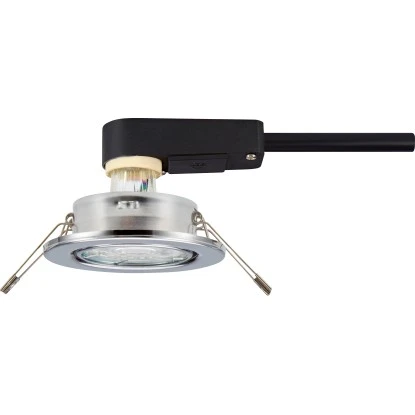 Für eine optimale Montage benötigt der LED-Spot eine Bohrung von Ø 68 mm. Das Außenmaß des Rahmes beläuft sich auf insgesamt Ø 86 mm. Die vorgesehene Einbautiefe beträgt 60 mm. In den Leuchtkörper ist eine austauschbare LED-Lampe des Typs GU10 integriert, die eine Leistungsaufnahme von 3,5 W besitzt. Dies ergibt ein warmweißes Licht bei 2.900 K und einen Lichtstrom von 330 lm. Die einfache Montage nehmen Sie durch einen bündigen Einbau vor, sodass nur der Leuchtenrahmen zu sehen ist. Der Lieferumfang beinhaltet ein 3er-Set inklusive der Leuchtmittel.