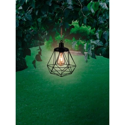 Zur Beleuchtung besitzt die Solar-Deko eine Filament LED. Mit ihrem enthaltenen Akku bietet sie eine lange Leuchtzeit. Durch ihr warmweißes Licht sorgt die Leuchte für eine gemütliche Atmosphäre in Ihrem Außenbereich. Da sie die Schutzart IP44 besitzt, ist sie optimal gegen Spritzwasser geschützt. Zur Befestigung verfügt die Solarpendelleuchte über ein Seil mit einem Haken am Ende, sodass sie beispielsweise an einem Ast aufgehängt werden kann.