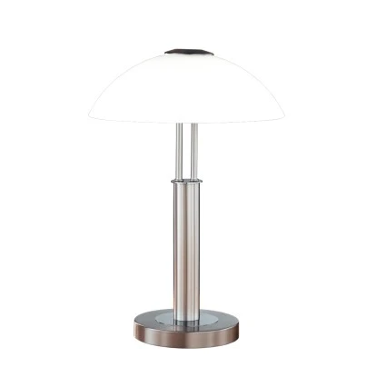 Die klassische Tischleuchte Prescot in der Farbe Nickel-matt überzeugt durch ihr elegantes Auftreten. Ein besonderes Highlight ist die Touch-it Funktion, die das Ein- und Ausschalten der Lampe durch Berühren ermöglicht. Das weiße Glas hat einen Durchmesser von 42 cm.